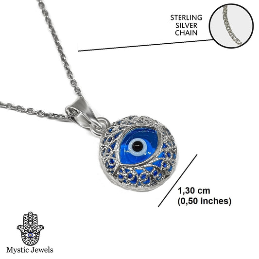 Collar Mal de Ojo de Cristal y Plata de Ley 925 - Ojo Turco Filigrana