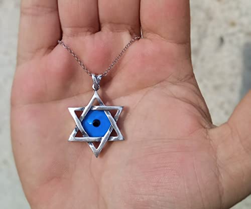 MYSTIC JEWELS By Dalia - Collar de estrella de David (Magen David) de plata de ley 925 con mal de ojo azul cristal en el medio (Grande)