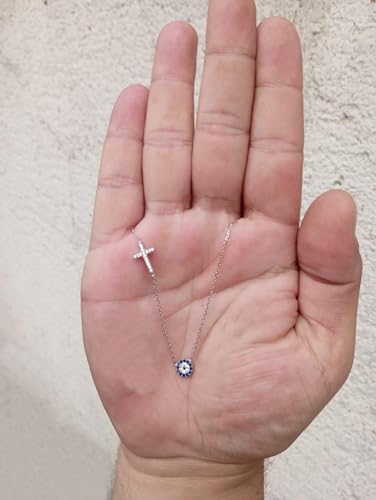 MYSTIC JEWELS By Dalia - Collar de plata de ley 925 con cruz y mal de ojo de circonita cúbica para buene suerte, regalar en año nuevo, cumpleaños