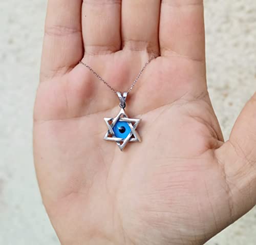 MYSTIC JEWELS By Dalia - Collar de estrella de David (Magen David) de plata de ley 925 con mal de ojo azul cristal en el medio
