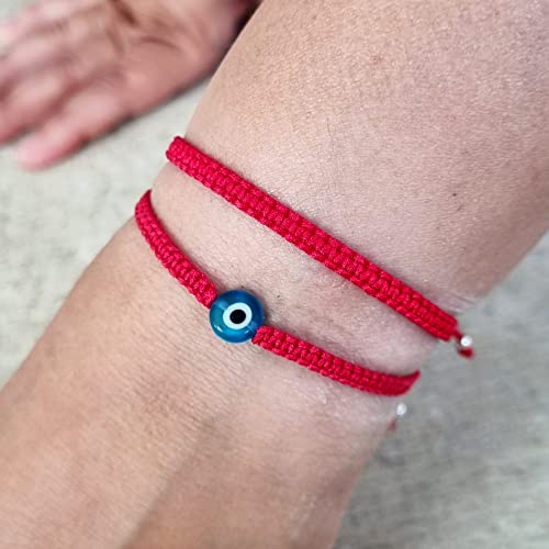 MYSTIC JEWELS by Dalia - Pulsera Hilo Rojo Macrame para Suerte - Ojo Turco Azul con Mano de Fatima Hamsa