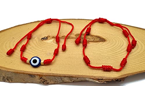 MYSTIC JEWELS By Dalia - Pulsera Kabbalah - cordón 7 nudos de hilo rojo - unisex - ajustable - protección de mal de ojo, buena suerte, good luck (2 piezas)