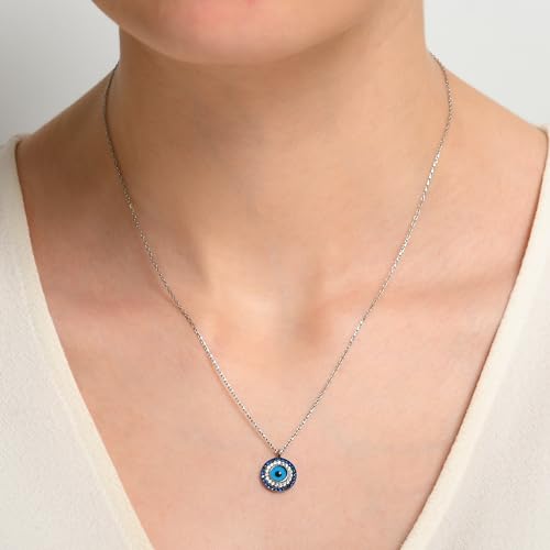 MYSTIC JEWELS By Dalia - Pendentif rond en argent sterling 925 contre le mauvais œil avec zircone bleue environnante à offrir pour le Nouvel An, un anniversaire
