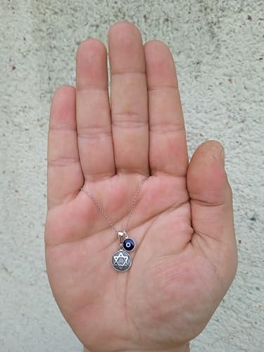 MYSTIC JEWELS By Dalia - Pendentif rond étoile de David en argent sterling 925 avec une breloque turque contre le mauvais œil de 7 mm pendante pour le mauvais œil (pendentif)