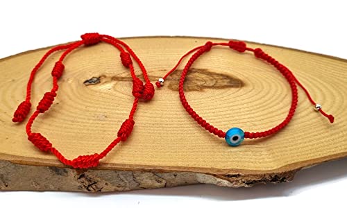 MYSTIC JEWELS par Dalia - Bracelet Fil Rouge 7 noeuds - Bracelet réglable protection et mauvais œil, amulette porte-bonheur, fait main, unisexe (Modèle 1)