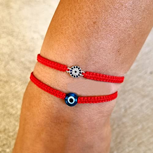 MYSTIC JEWELS par Dalia - Bracelet en fil rouge - Oeil turc bleu tournant pour la bonne chance (rouge)