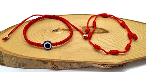 Mystic Jewels by Dalia - Bracelet Kabbale - Cordon de fil rouge à 7 nœuds avec boules - unisexe - réglable - protection contre le mauvais œil, bonne chance, bonne chance (Rouge)
